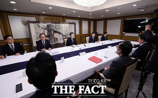 이주호 권한대행은 이날 간담회 모두발언에서 "국내외적 불확실성이 지속되면서 국민의 피해와 우려가 큰 바, 미국과의 협의 시 무엇보다 우리 국민과 국가의 이익을 최우선으로 두는 것이 중요하다"고 강조했다.