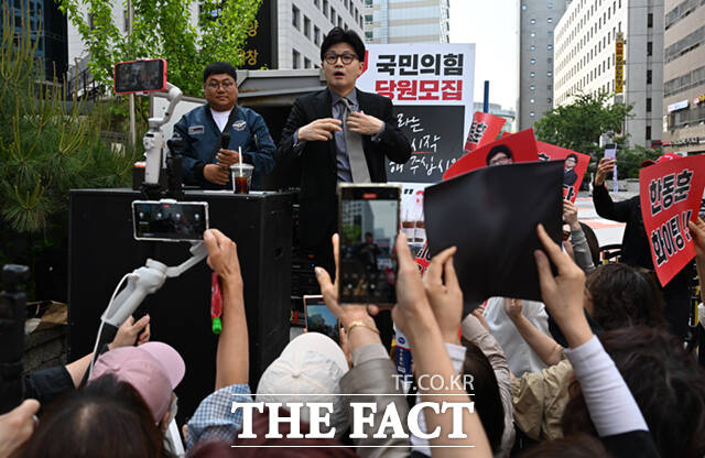 한 전 대표는 지난 3일 국민의힘 대선 후보를 선출하는 전당대회에서 종합득표율 43.47%(당원투표 38.75%, 여론조사 48.19%)를 기록하며 56.53%(당원투표 61.25%, 여론조사 51.81%)를 얻은 김문수 후보에게 대선 후보 자리를 내줬다.