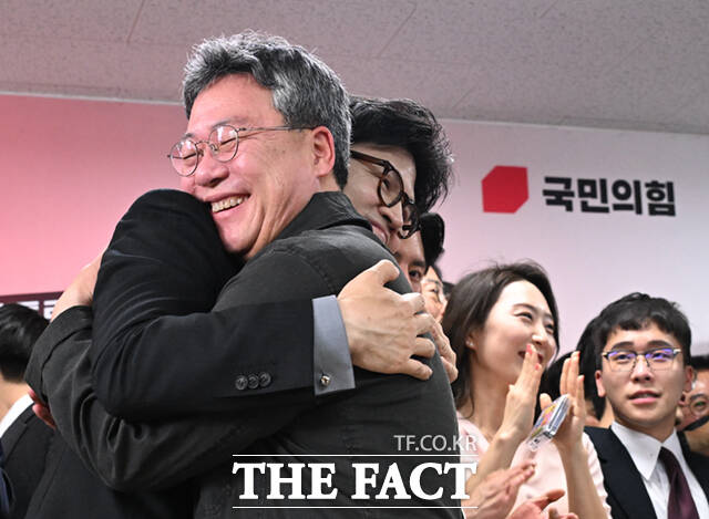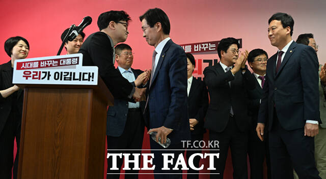 [더팩트ㅣ이새롬 기자] 국민의힘 최종 후보에 탈락한 한동훈 국민의힘 전 대표가 7일 오후 서울 여의도 대하빌딩에서 열린 선거 캠프 해단식에서 지지자들에게 인사하고 있다.