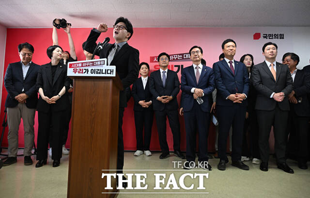 한 전 대표는 지난 3일 국민의힘 대선 후보를 선출하는 전당대회에서 종합득표율 43.47%(당원투표 38.75%, 여론조사 48.19%)를 기록하며 56.53%(당원투표 61.25%, 여론조사 51.81%)를 얻은 김문수 후보에게 대선 후보 자리를 내줬다.