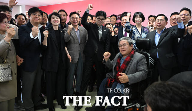 이날 한 전 대표는 "지금 우리 국민의 힘이 겪고 있는 이 상황에 대해서 여러분들께서 정말 힘들어하실 거라고 생각한다. 제가 죄송하다"며 "바닥을 보이고 있을 때 우리가 다시 치고 올라갈 수 있다. 보수를 개혁하자. 국민의힘 책임당원에 가입해 달라. 그 힘으로 보수를 개혁하고 국민의힘을 개혁하고 대한민국을 더 좋은 나라로 만들 수 있게 해 달라. 절망하지 않겠다. 포기하지 않겠다"라고 말했다.