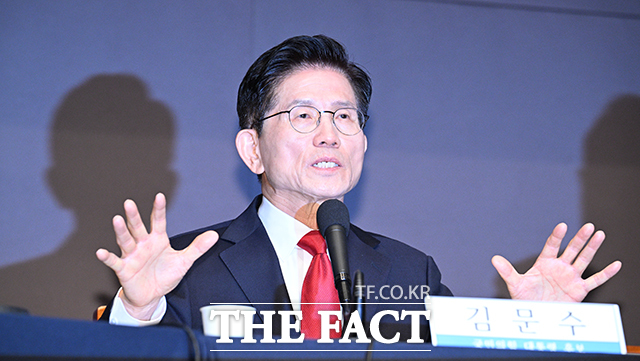 [더팩트ㅣ박헌우 기자] 김문수 국민의힘 대선후보가 8일 오전 서울 중구 한국프레스센터에서 열린 '관훈클럽 초청 토론회'에 참석해 토론자의 질문에 답하고 있다.