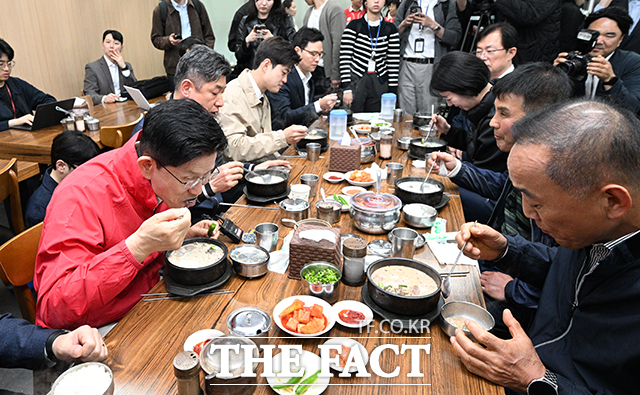 [더팩트ㅣ박헌우 기자] 김문수 국민의힘 대선 후보가 12일 오전 서울 송파구 가락시장을 찾아 상인들과 조찬 간담회를 갖고 있다.cjg05023@tf.co.kr사진영상기획부 photo@tf.co.kr