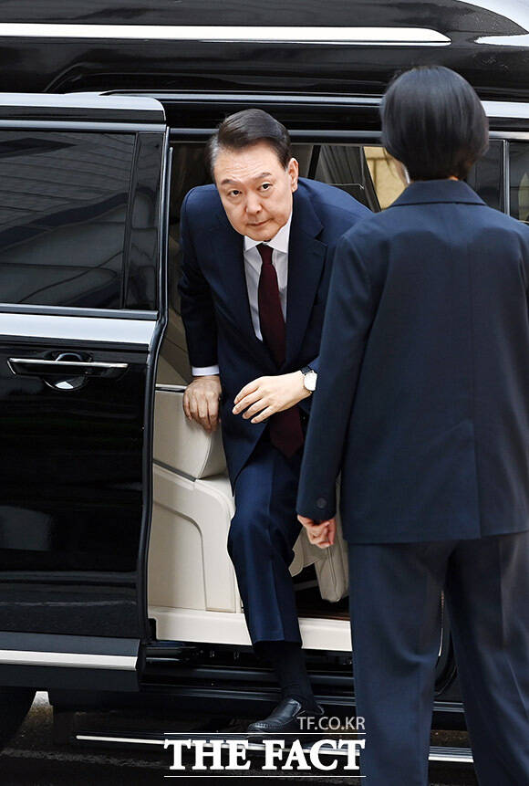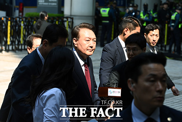 '첫 공개 출석' 윤석열, 취재진 질문엔 '묵묵부답' [TF사진관]