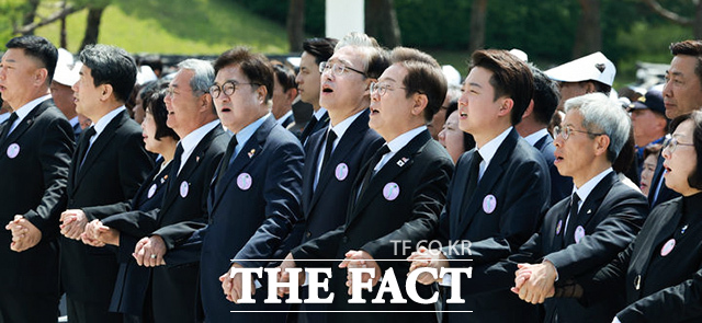 다만 국민의힘 김문수 대선 후보는 이날 기념식엔 참석하지 않고 전날인 17일 5·18 민주 묘지 참배와 광주교도소를 방문하는 등 광주 민심을 자극하지 않고 5·18을 추모하는 전략을 택했다.