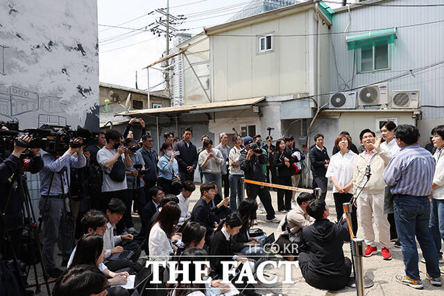 김문수 후보는 "(쪽방촌이) 영등포구 일대의 관문에 편리하기 때문에 노숙인들이나 쪽방촌 주민들이 많이 계시다"며 "이번에 새로 깨끗하게 임대 주택을 건설하게 된 데 대해서 감사하게 생각한다"고 했다.