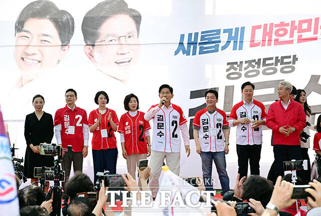[더팩트ㅣ임영무 기자] 김문수 국민의힘 대선 후보가 20일 서울 송파구에서 열린 송파를 새롭게 유세에서 유권자들을 향해 지지를 호소하고 있다.