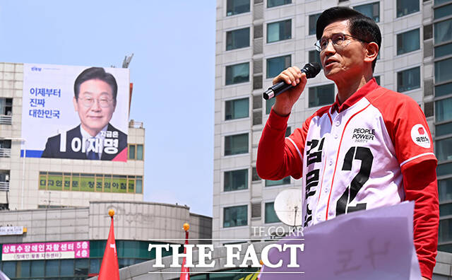 [더팩트ㅣ임영무 기자] 김문수 국민의힘 대통령 후보가 21일 경기 고양시 화정역 문화광장 앞을 찾아 지지를 호소하고 있다.