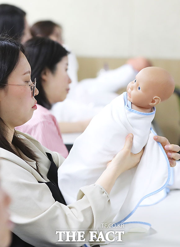 [더팩트ㅣ이효균 기자] 서울 송파구(구청장 서강석)는 임산부 영·유아를 위한 초보 엄마 아기 돌보기 실전 프로그램을 운영하고 있다. 출산 전후에 활용할 수 있는 교육 프로그램으로 아기 모형을 활용한 속싸개 싸기, 목욕, 트림 시키기 등 신생아 다루는 법과 모유 수유법을 배우게 된다.