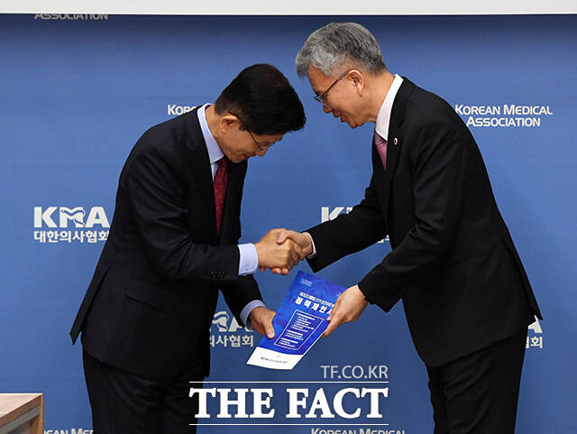 이에 김택우 의사협회장은 "정부가 강행한 의대 증원 정책은 의료전문가의 지속적 우려와 반대에도 일방적으로 추진됐고, 그 결과 저희 예상대로 의료체계 붕괴가 가속화됐다"고 밝혔다. 김 회장은 "전문가를 배제한 무리한 정책 추진이 어떤 결과를 초래했는지를 후보님께서도 너무 절감하고 있을 것"이라면서 "정책 결정 과정에서 의료 현장의 목소리가 충분히 반영될 수 있도록 투명하고 합리적인 구조를 마련해주시길 요청드린다"고 말했다.