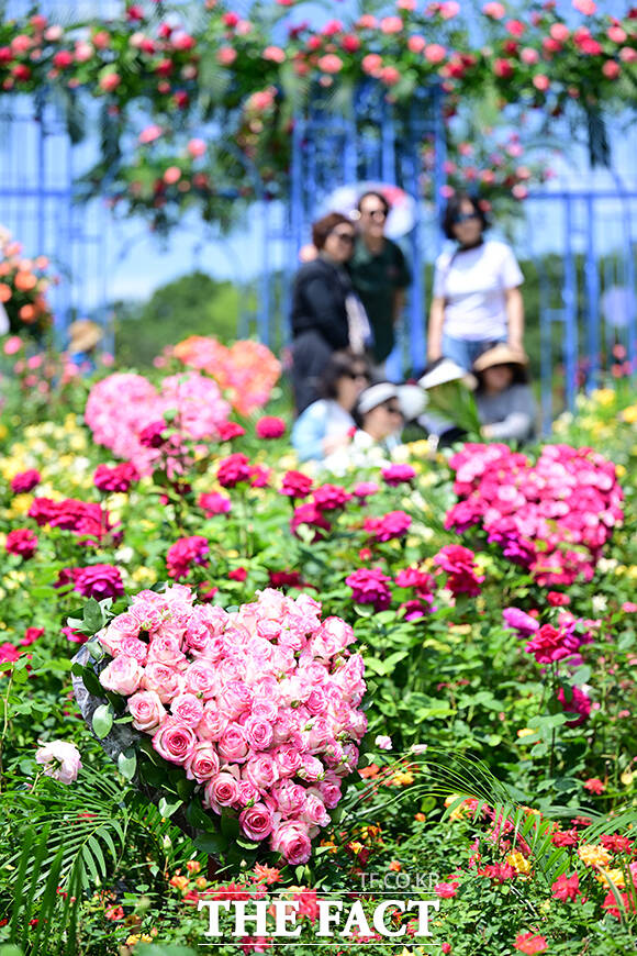 [더팩트ㅣ남윤호 기자] 2025 서울국제정원박람회 개막 첫 날인 22일 오후 서울 동작구 보라매공원에서 시민들이 '포켓몬 메타몽 가든'을 둘러보고 있다.