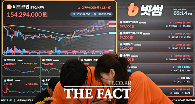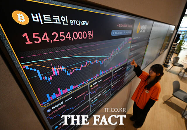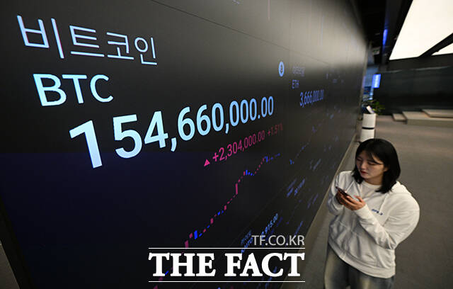 [더팩트ㅣ박헌우 기자] 가상화폐 비트코인이 사상 최초로 11만 달러를 넘어선 22일 오후 서울 강남구 업비트 고객센터 전광판에 비트코인 시세가 표시돼 있다.
