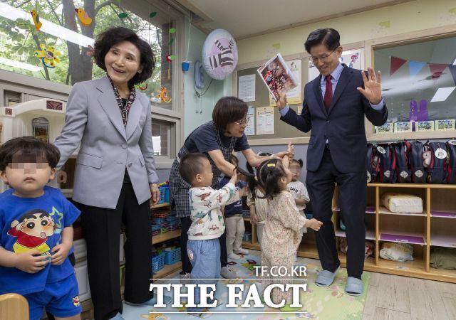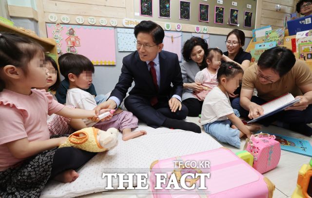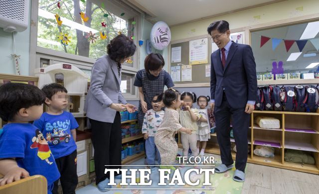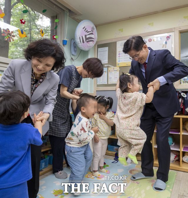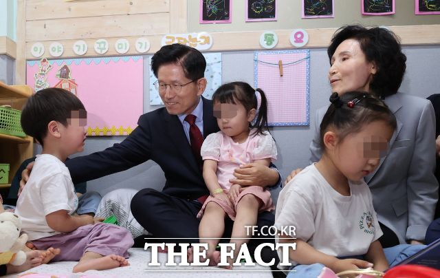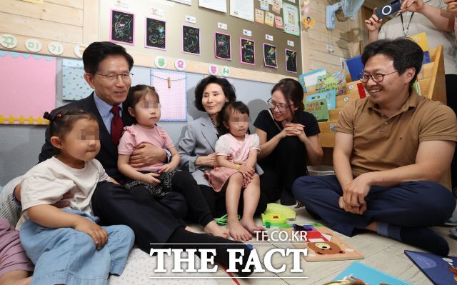 어린이집 아이들 만난 김문수...'가족 동반 첫 일정' [TF사진관]