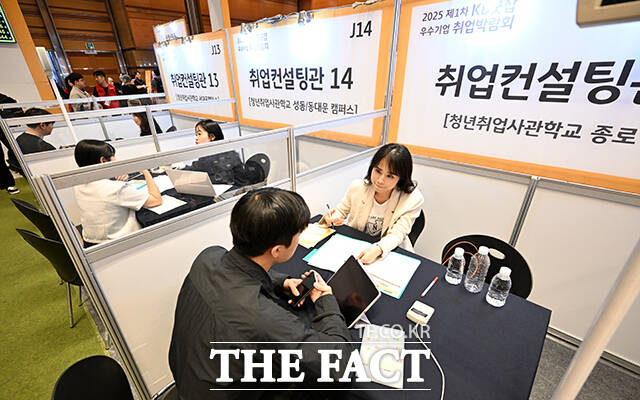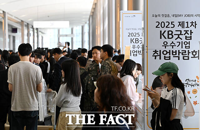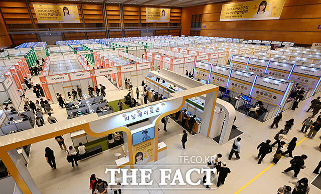 [더팩트ㅣ서예원 기자] '2025 제1차 KB굿잡 우수기업 취업박람회'가 26일 오전 서울 강남구 코엑스 D홀에서 열린 가운데 관람객들이 부스를 둘러보고 있다.