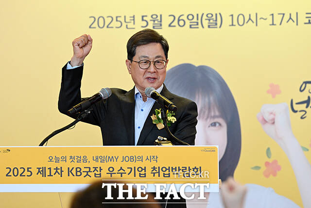 [더팩트ㅣ서예원 기자] 이달곤 동반성장위원회 위원장이 26일 오전 서울 강남구 코엑스 D홀에서 열린 '2025 제1차 KB굿잡 우수기업 취업박람회' 개막식에서 축사를 하고 있다.