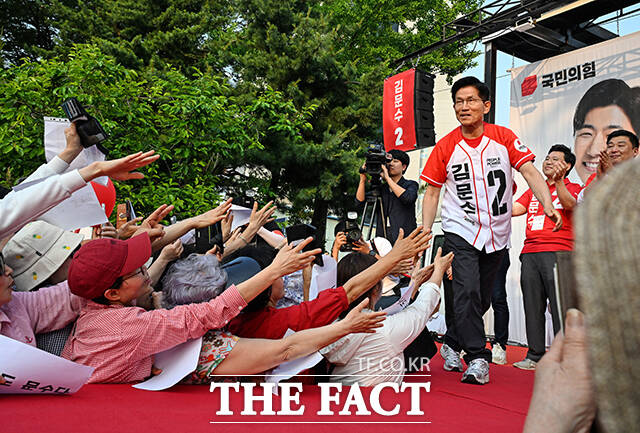 김 후보는 "노원·도봉·강북에 GTX가 뻥 뚫려서 여러분을 시원하게 해드리겠다"며 "주민들이 원하는 재개발과 재건축을 더 빠르고 지역에 맞게 확실히 하겠다"고 했다.