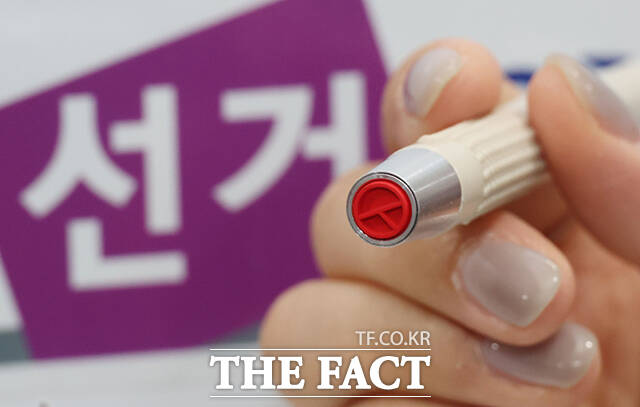 [더팩트ㅣ장윤석 기자] 제21대 대통령선거 사전투표를 하루 앞둔 28일 오전 서울 중구 신당누리센터에 마련된 사전투표소에서 선거관리위원회 관계자가 기표 도장을 점검하고 있다.j3321362@tf.co.kr사진영상기획부 photo@tf.co.kr