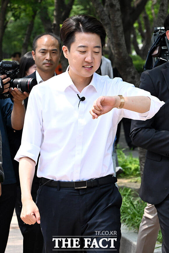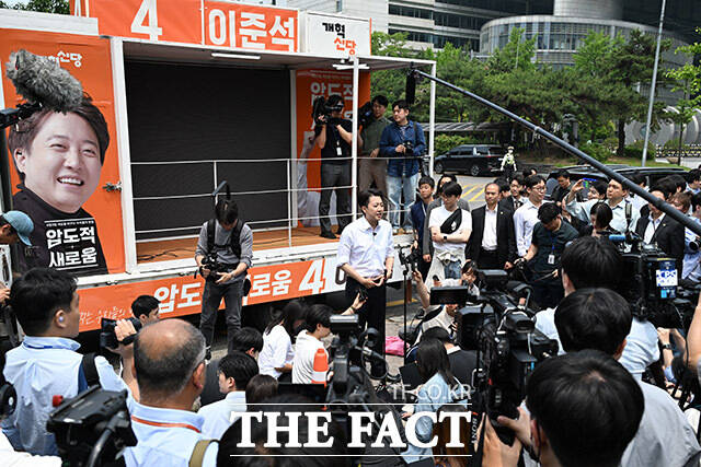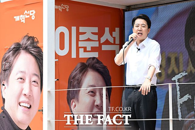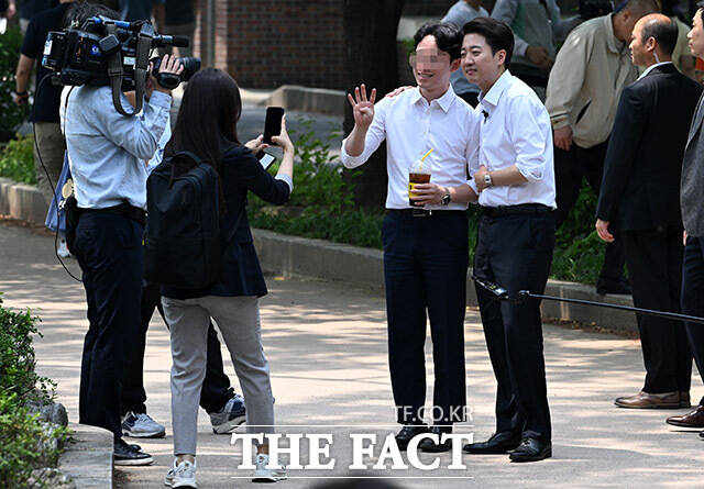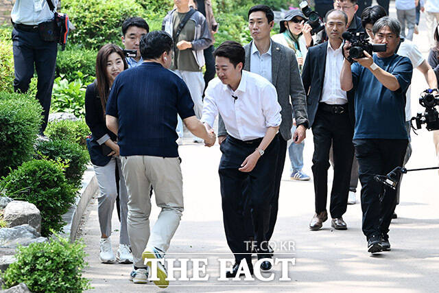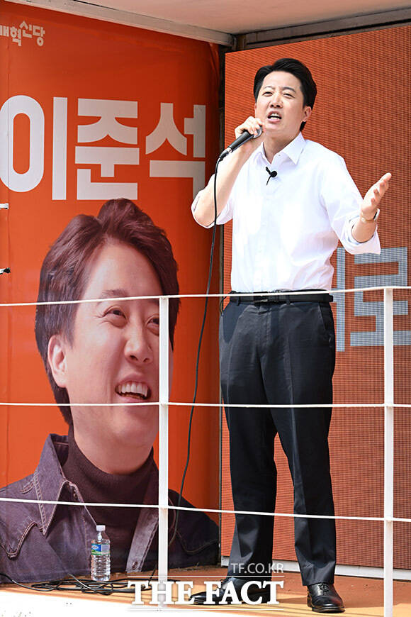 [더팩트ㅣ남용희 기자] 이준석 개혁신당 대선 후보가 28일 오후 서울 영등포구 여의도 공원에서 산책유세를 하며 지지를 호소하고 있다.