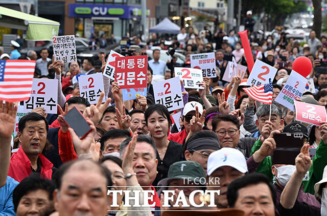 김문수 후보는 1986년 인천 5·3 민주항쟁에 참여해 대통령 직선제 개헌을 요구한 바 있다. 당시 서울지역노동운동연합 지도위원을 맡고 있던 김 후보는 소요, 국가보안법 위반, 집시법 위반 등으로 징역 3년, 자격정지 3년을 선고받았다.