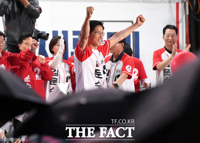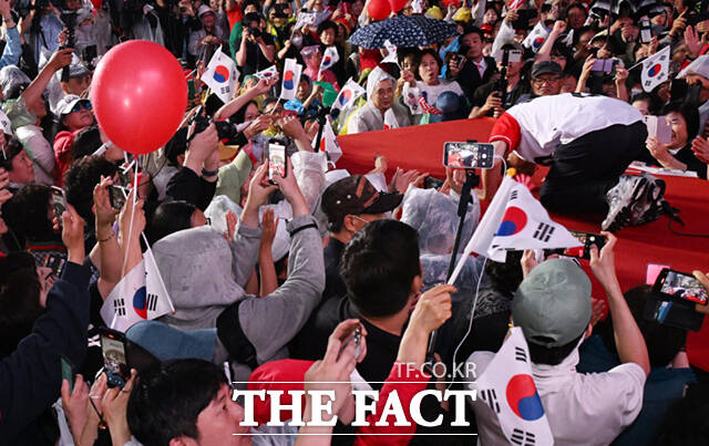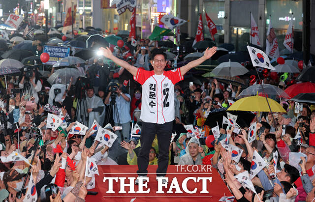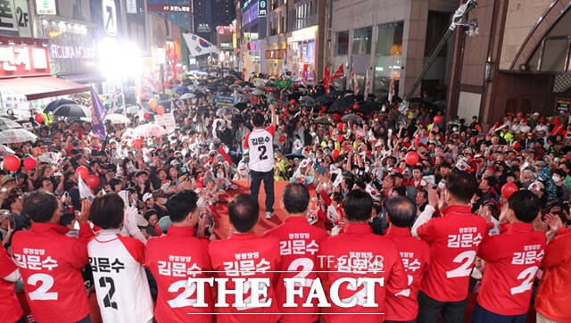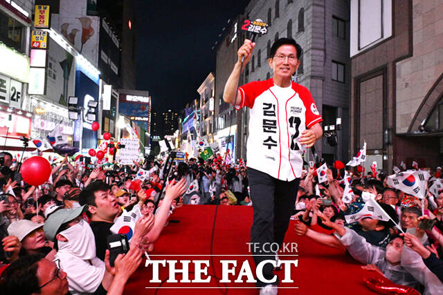 [더팩트ㅣ남윤호 기자] 김문수 국민의힘 대선 후보가 28일 오후 대구 중구 동성로에서 유세를 갖고 지지를 호소하고 있다.