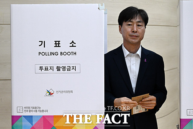 [더팩트ㅣ남용희·서예원 기자] 한창민 사회민주당 대표(더불어민주당 공동선대위원장)가 제21대 대통령선거 사전투표 첫날인 29일 오전 서울 서초구 반포1동 주민센터에서 사전 투표를 하고 있다.