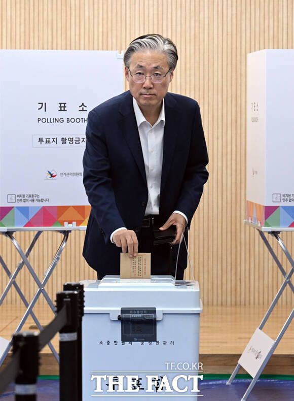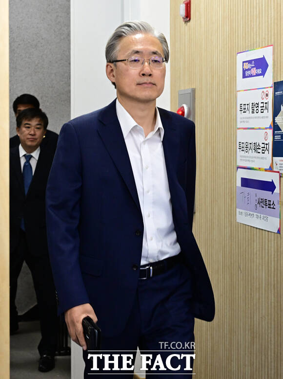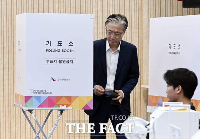 [더팩트ㅣ이새롬 기자] 김형두 헌법재판소장 권한대행이 제21대 대통령선거 사전투표 첫날인 29일 오전 서울 종로구 가회동 주민센터에 마련된 투표소를 찾아 투표를 하고 있다.