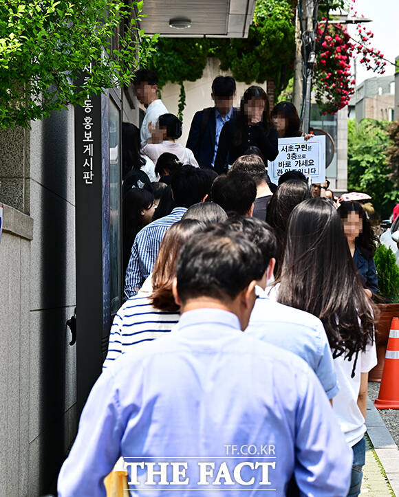 [더팩트ㅣ배정한 기자] 제21대 대통령선거 사전투표 둘째 날인 30일 오후 서울 서초구 서초1동 주민센터를 찾은 유권자들이 줄지어 투표 순서를 기다리고 있다.
