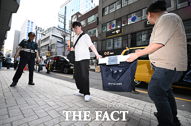 [더팩트ㅣ박헌우 기자] 제21대 대통령선거 사전투표가 종료된 30일 오후 선거관리위원회 관계자들이 서울시 중구 중구선거관리위원회로 투표함을 이송하고 있다.