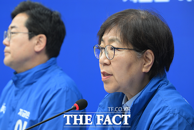 [더팩트ㅣ박헌우 기자] 정은경 더불어민주당 총괄선거대책위원장이 2일 오전 서울 여의도 더불어민주당 중앙당사에서 열린 중앙선거대책위원회의에서 발언하고 있다.