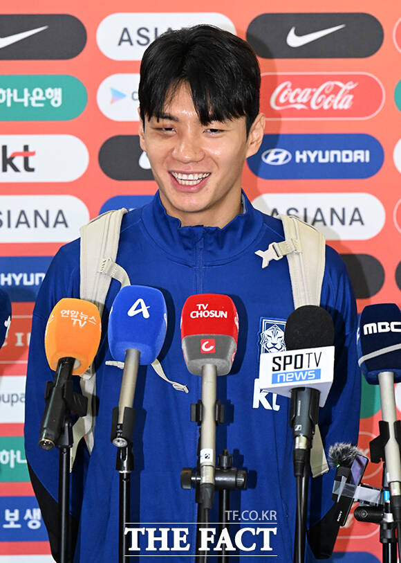 [더팩트ㅣ인천국제공항=장윤석 기자] 축구 국가대표팀 전진우 선수가 2일 오전 인천국제공항을 통해 이라크로 출국하며 인터뷰를 하고 있다.