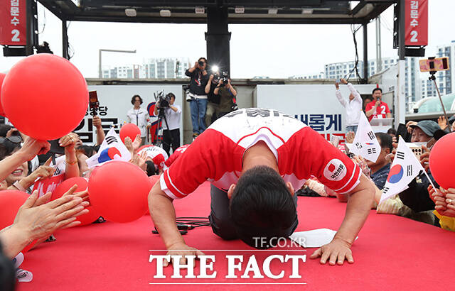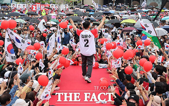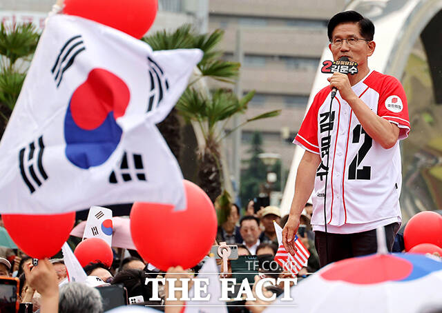 또 김 후보는 비상계엄 사태를 언급하며 "국민들이 상상하지 못한 개혁을 추진하고 국정운영의 근본부터 바꿔서 절대 실망시키지 않겠다. 김문수 찍으면 김문수가 된다"고 지지를 호소했다.
