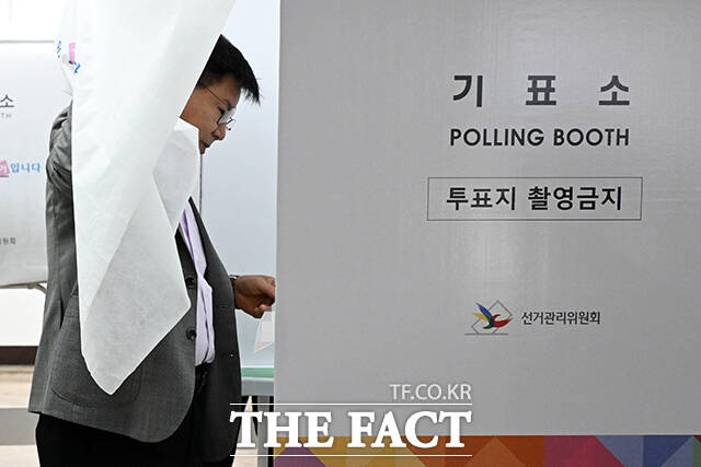 [더팩트ㅣ서예원 기자] 박강수 마포구청장이 3일 오전 서울 마포구 마포삼성아파트 관리사무소에 마련된 도화동제3투표소에서 대통령선거 투표를 하고 있다.