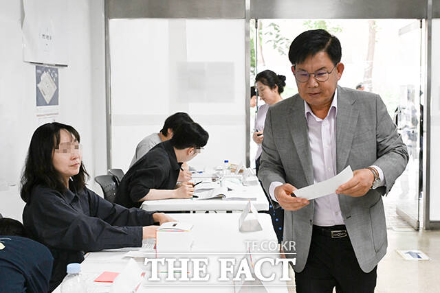 [더팩트ㅣ서예원 기자] 박강수 마포구청장이 3일 오전 서울 마포구 마포삼성아파트 관리사무소에 마련된 도화동제3투표소에서 대통령선거 투표를 하고 있다.