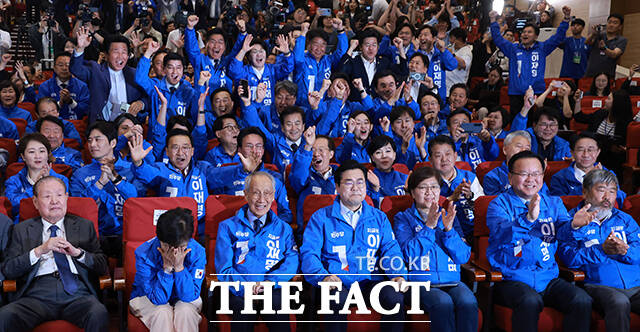 출구조사 발표에 희비 엇갈리는 더불어민주당-국민의힘 [TF사진관]