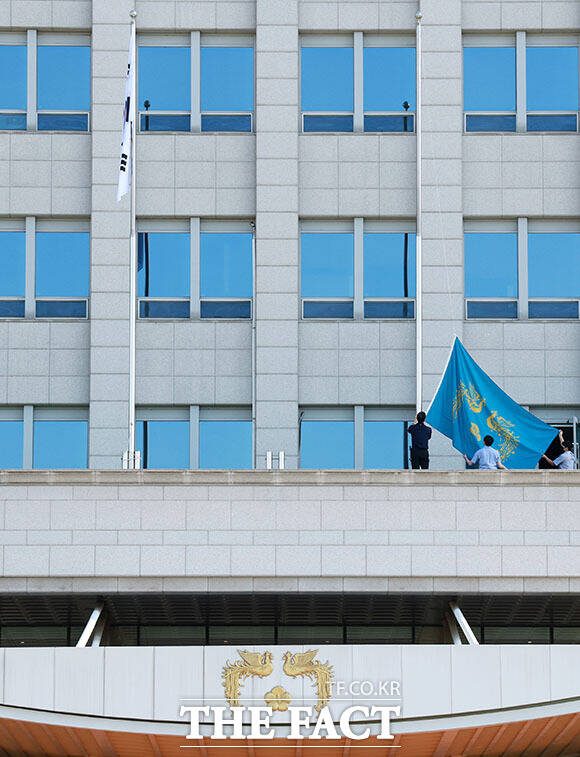 [더팩트ㅣ이효균 기자] 제21대 이재명 대통령의 임기가 시작된 4일 오전 서울 용산구 대통령실 청사에 봉황기가 게양되고 있다.