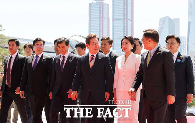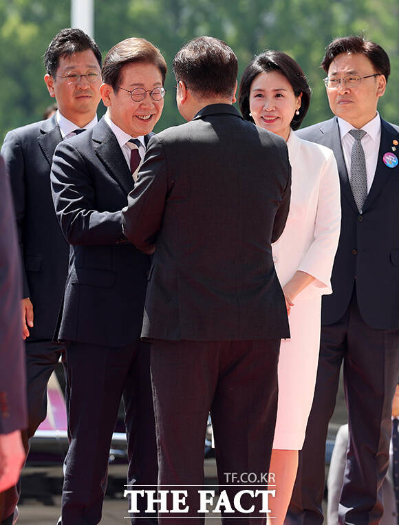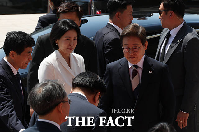 [더팩트ㅣ국회사진기자단] 이재명 대통령과 김혜경 여사가 4일 오전 11시 서울 여의도 국회 로텐더홀에서 열리는 ‘취임선서’를 하기 위해 입장하고 있다.