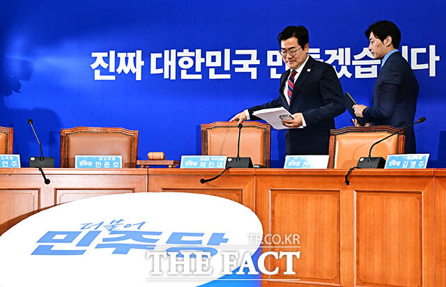 [더팩트ㅣ국회=배정한 기자] 박찬대 더불어민주당 대표 직무대행 겸 원내대표가 5일 오전 서울 여의도 국회에서 열린 최고위원회의에 참석하고 있다.