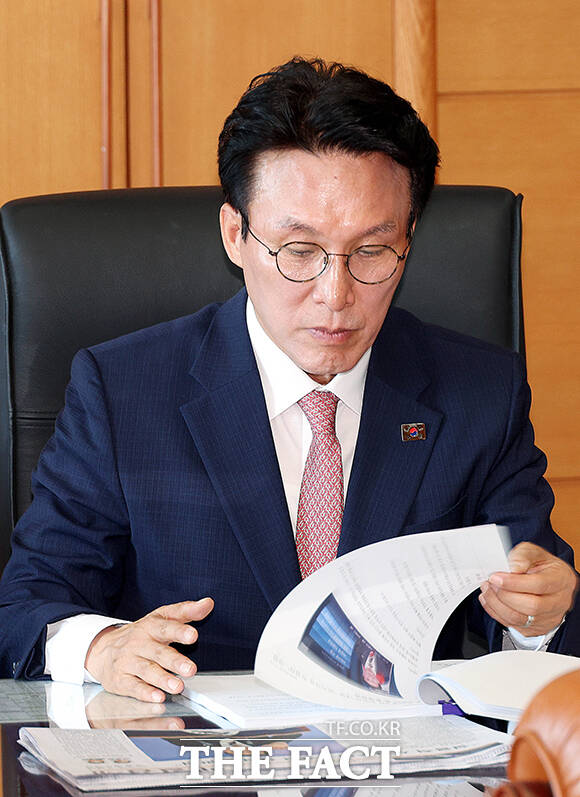 [더팩트ㅣ임영무 기자] 김민석 국무총리 후보자가 5일 오전 서울 종로구 통의동 금융감독원 연수원에 마련된 인사청문회 준비단 사무실로 출근해 회의 자료를 살펴보고 있다.
