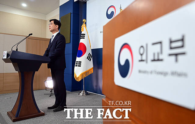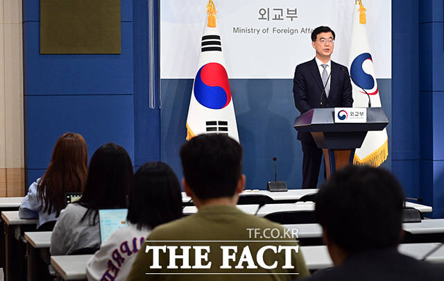 [더팩트ㅣ임영무 기자] 이재웅 외교부 대변인이 5일 오후 서울 종로구 외교부에서 정례브리핑을 하고 있다.