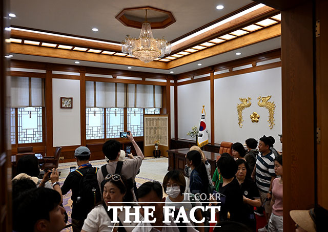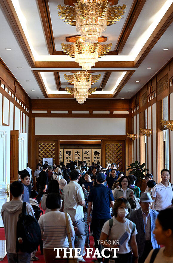 [더팩트ㅣ이효균 기자] 5일 오후 서울 종로구 청와대 본관이 관람객들로 붐비고 있다.