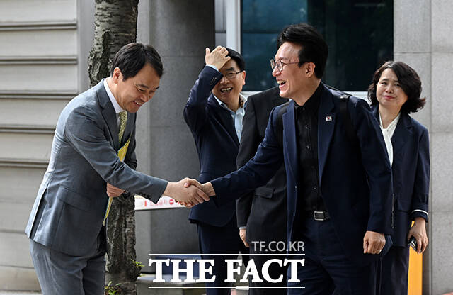 [더팩트ㅣ임영무 기자] 김민석 국무총리 후보자가 9일 오전 서울 종로구 통의동 금융감독원 연수원에 마련된 인사청문회 준비단 사무실로 출근하며 기자들의 질문에 답변을 하고 있다.