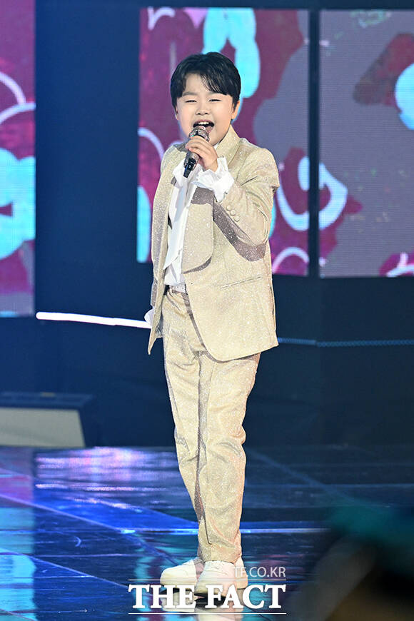가수 황민호가 9일 오후 서울 마포구 SBS프리즘타워에서 열린 SBS Life '더트롯쇼'에 참석해 '관상타령' 무대를 펼치고 있다. /서예원 기자