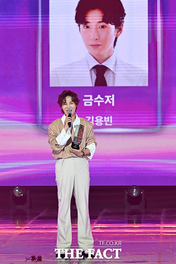 [더팩트ㅣ서예원 기자] 가수 김희재가 9일 오후 서울 마포구 SBS프리즘타워에서 열린 SBS Life '더트롯쇼'에 참석해 1위를 발표하고 있다.