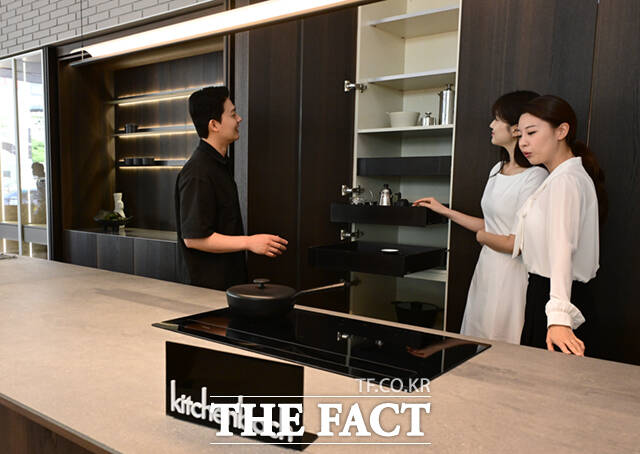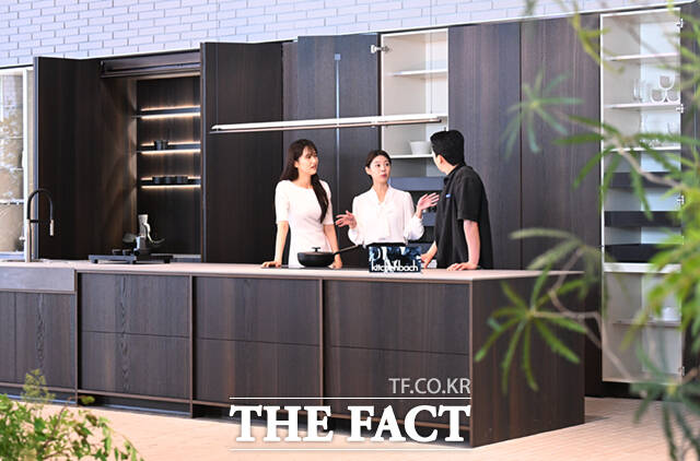 [더팩트ㅣ이새롬 기자] 12일 서울 강남구 한샘 플래그십 논현 매장이 리뉴얼 오픈하며 프리미엄 키친 브랜드 '키친바흐'를 선보인 가운데, 고객들이 제품을 살펴보고 있다.