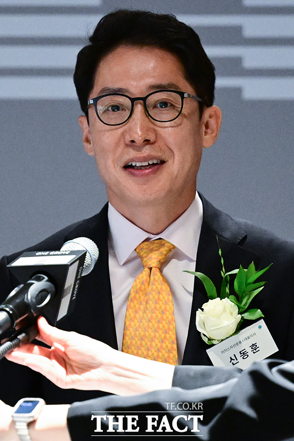 [더팩트ㅣ남윤호 기자] 12일 오전 서울 강서구 마곡동 원그로브에서 열린 개점 기념행사에서 신동훈 이지스자산운용 대표가 기념사를 앞두고 미소짓고 있다. ilty012@tf.co.kr 사진영상기획부 photo@tf.co.kr