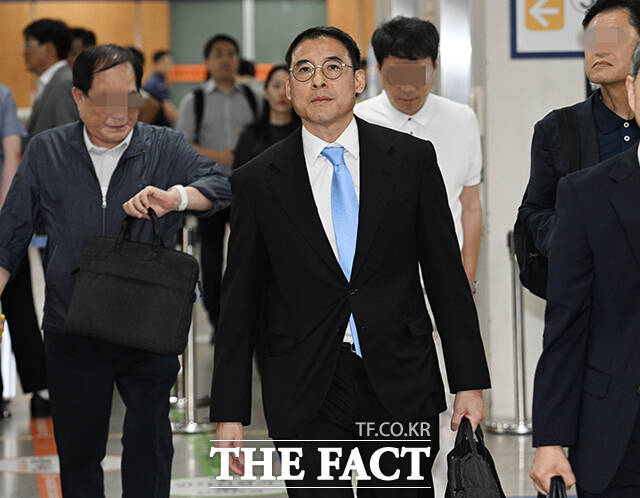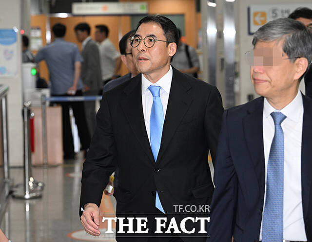 [더팩트ㅣ박헌우 기자] 효성가(家) 차남 조현문 전 효성그룹 부사장이 13일 오후 서울 서초구 서울중앙지방법원에서 열린 강요미수 혐의 공판에 출석하고 있다.