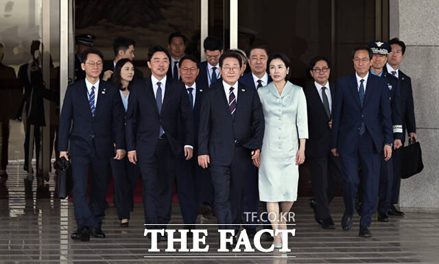 이 대통령은 현지시간 15~17일 캐나다 앨버타주에서 열리는 G7 정상회의 참석을 위해 이날 출국해 1박 3일의 일정을 소화한다. 취임 후 12일 만에 다자 정상외교에 나서는 셈이다.