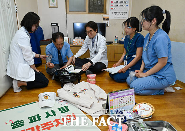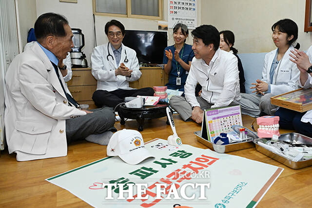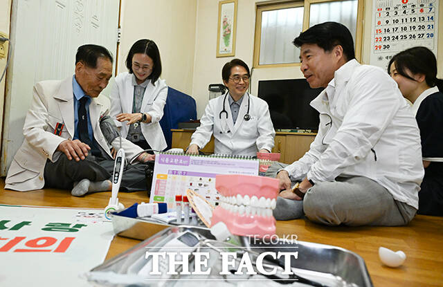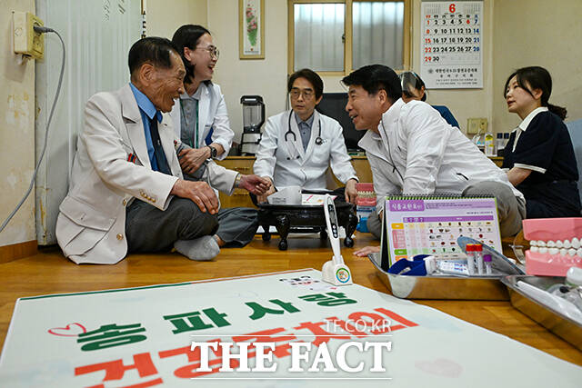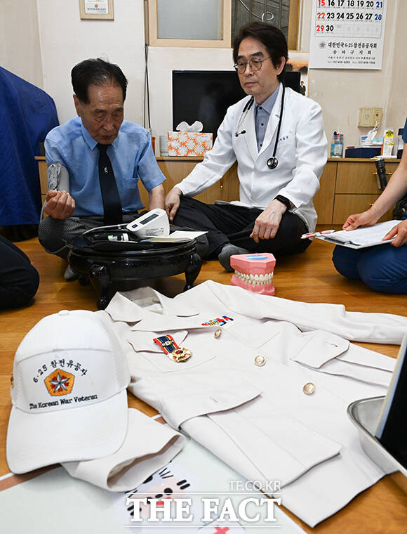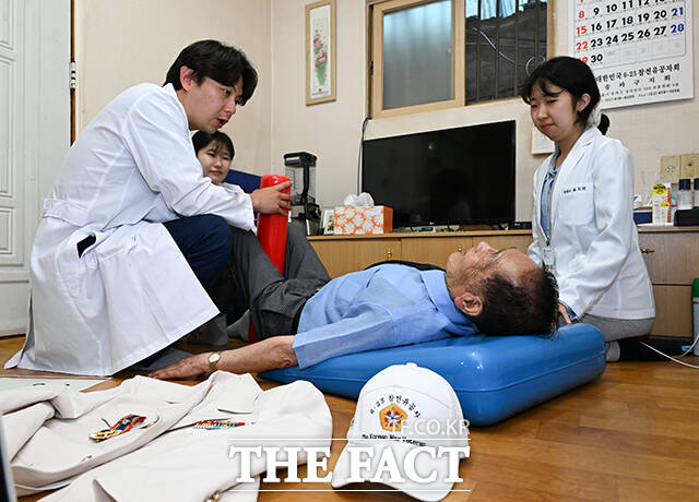 [더팩트ㅣ장윤석 기자] 서강석 송파구청장과 송파구 건강 주치의들이 '호국 보훈의 달 국가 유공자 방문 의료서비스'를 실시한 17일 오후 서울 송파구 국가유공자 황병준 씨의 집을 방문해 의료봉사를 하고 있다.