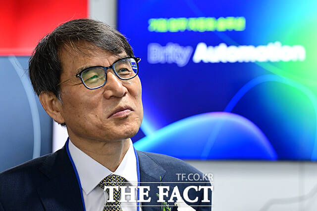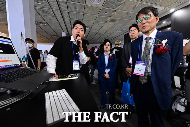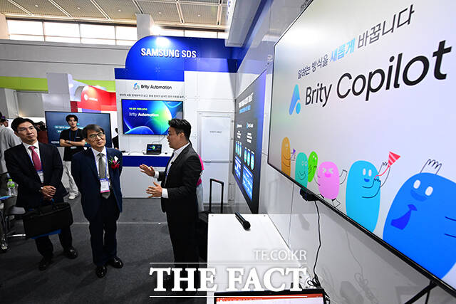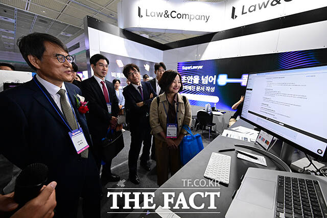 삼성SDS 부스를 방문해 기업을 위한 생성형 AI 서비스 살펴보는 노태악 대법관.