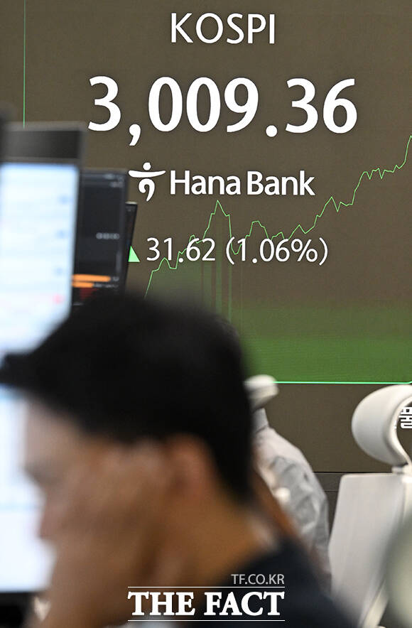 코스피가 장중 3000선에 오른 것은 코로나19 팬데믹 기간인 2022년 1월 3일(장중 3010.77) 이후 3년 5개월여 만이다.